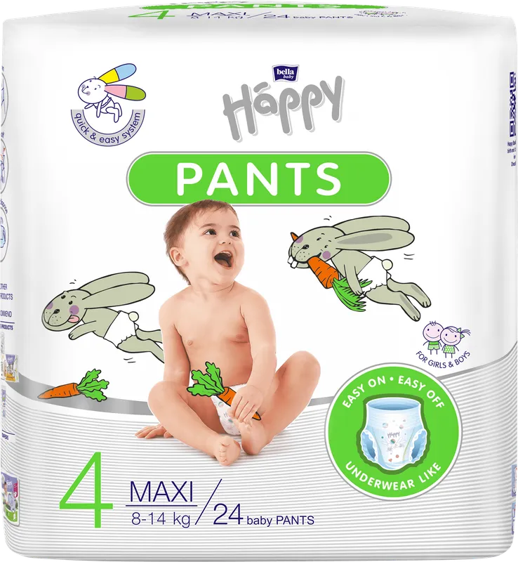 Your child is becoming more confident on their feet and needs complete freedom of movement. The Quick & Easy System in Bella Baby Happy Pants makes diaper changing easier and ensures a quick return to playtime.